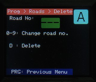 Select the road to delete by typing its number. As with the other screens, the number is highlighted with a yellow background until it "locks in", when it has a green background. If you type a road number that doesn't exist, the screen will display three dashes, as above.