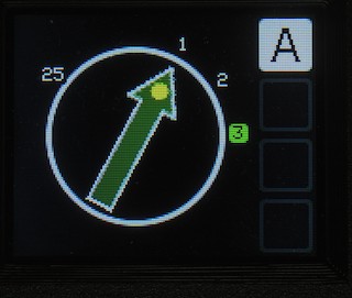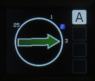 The arrow will track around the screen in sync with the turntable, until it arrives at its destination. At this time, the arrow will return to being green (ready), and the indicators all go out.