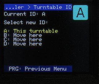 When you added this turntable, you gave it a letter A-D. Should you wish to assign it to a different letter, this menu accomplishes that. Simply press the letter you want to move it to, and it shall move, et voila!