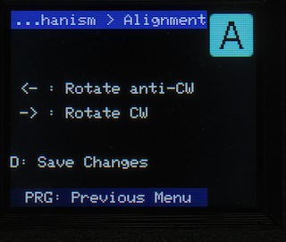It is possible, depending on your stepper wiring, that the turntable will rotate in the wrong direction (i.e. the arrow shows it going clockwise, the actual turntable is turning anti-clockwise). Whilst this is rare, and could be fixed with wiring; it's easier to come to this screen and to press "C" to reverse the direction.